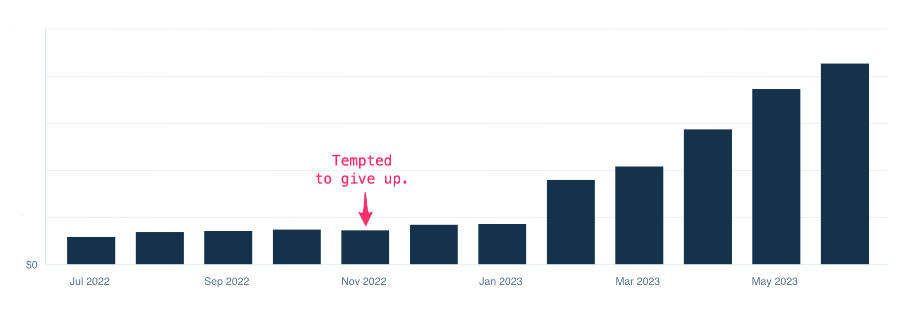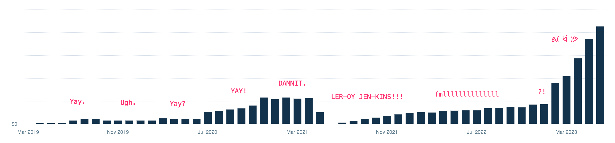 Imagine if we had raised $M's in funding at that point (Sept '22-ish). Barring total incompetence (hey!), we probably could have grown it to an admirable size.
